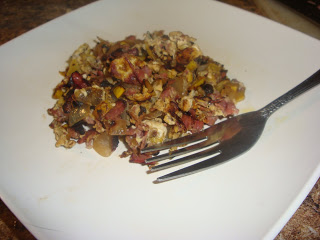 And that’s it! Now, if you want to stop there, that’s great. You’ve got a tasty little meal there. If you want to take it to the next level, you can scramble in an egg (or some Egg Beaters if you prefer) as shown above. For me, this would equal the perfect breakfast!
