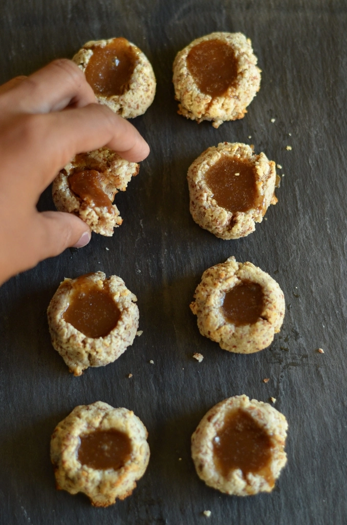As far as the cream cheese goes, I like it. It gives the cookie a cream, rich texture. I was a bit nervous about that against the caramel, thinking it should have fruit. But I did a fruity thumbprint last year. No repeats!