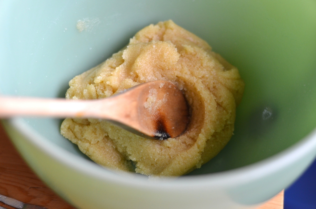 - In another bowl, mix butter and sweetener until fully combined, before adding egg and vanilla. Combine wet and dry ingredients and mix thoroughly, being careful to work out any lumps in the almond flour.