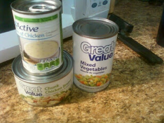 To make the filling you’d combine your chicken, veggies and soup in a sauce pan.