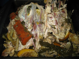 | My turkey carcass and all the veggies I used during roasting all go in the stock pot |