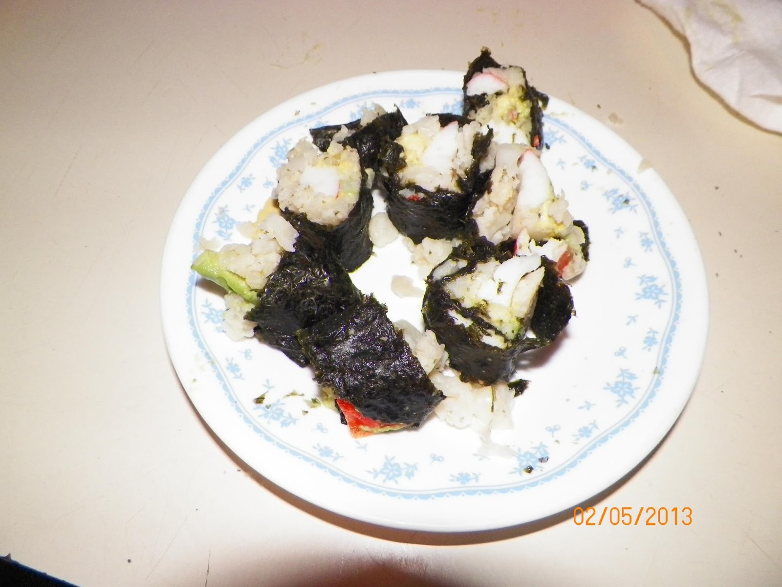 presentation, she made sushi rolls…using cauliflower rice.