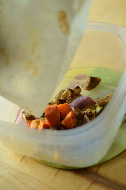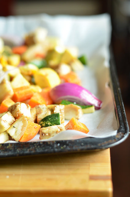 After the veggies come out of the oven, that’s sort of the danger zone there. They smell so good. They look like they taste so good.