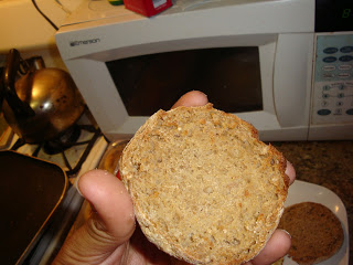 Now, back to Fiber One. Cardboard? No. Delicious? Usually. Easy to achieve “nooks and crannies”? Nooooot necessarily. I had to toast this guy for quite a bit to get the nooks and crannies I wanted. Granted, had I been doing something else besides anxiously watching the toaster oven, I might not have noticed how long it took. But in the end it was all good.
