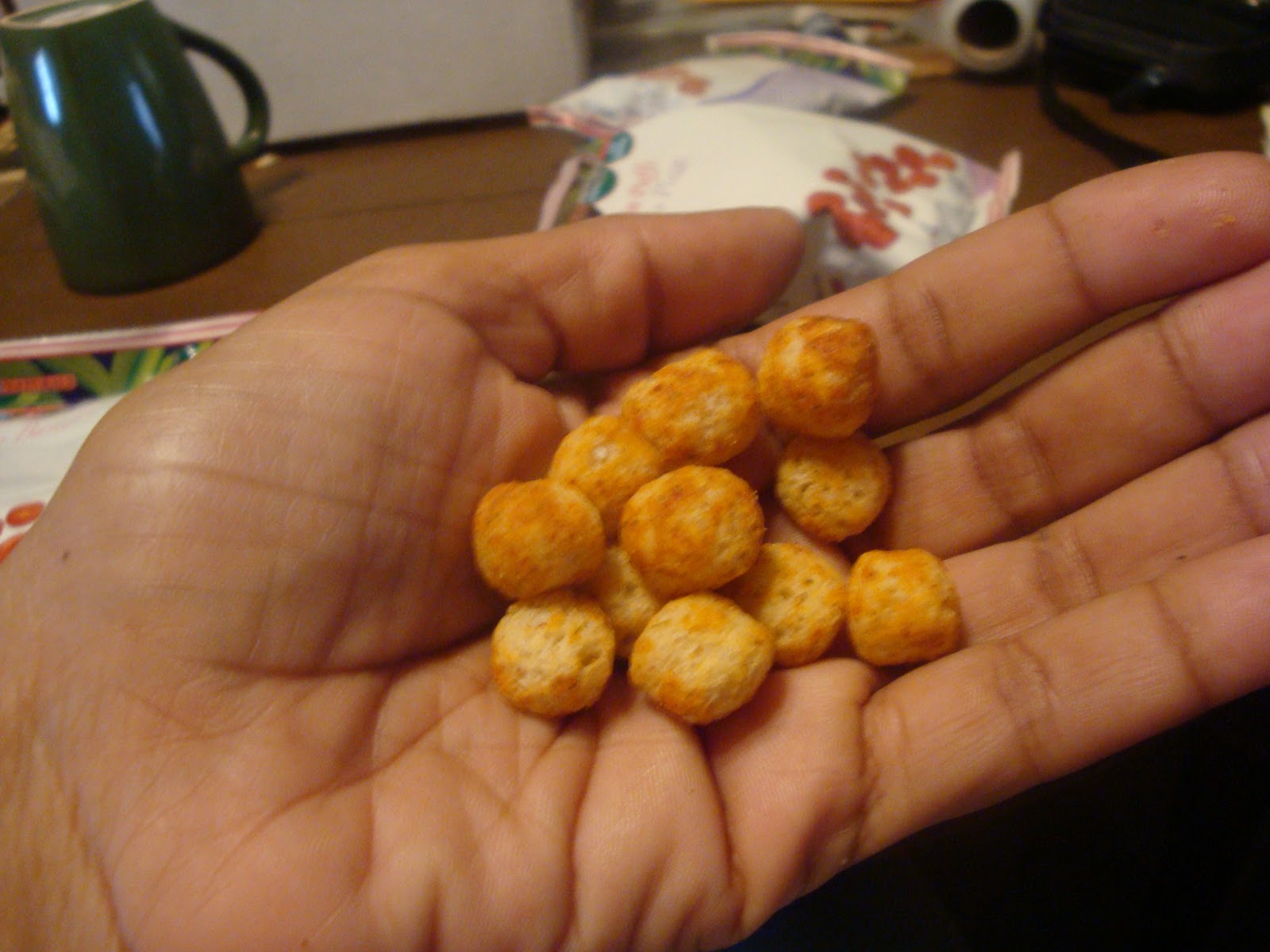 - If you are one of those people who misses mindless munching, this is your snack! The package feels light but there is a bazillion of those suckers in there! I get that way myself sometimes and, to me, munching on a 115 calorie, 12g of protien bag of protein puffs is exponentially better than ANYTHING else I could munch on to satisfy that same craving.