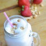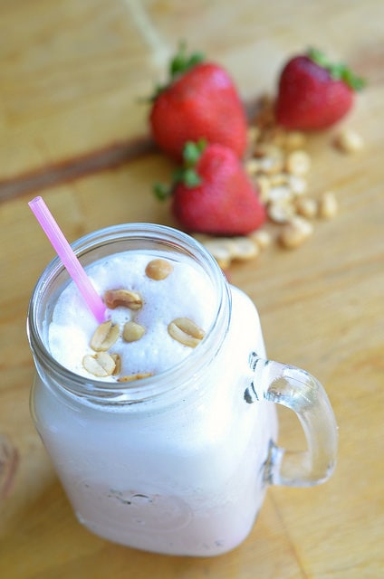 - Combine milk, protein, strawberries, sweetener and powdered peanuts in a blender for about a minute.
