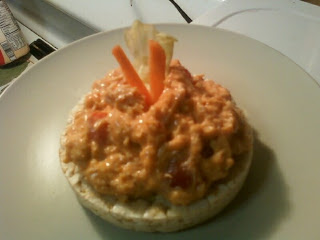 I served mine on a lightly salted rice cake (from Aldi!). This also goes well on a multi-grain wrap or simply by itself for a nummy treat!