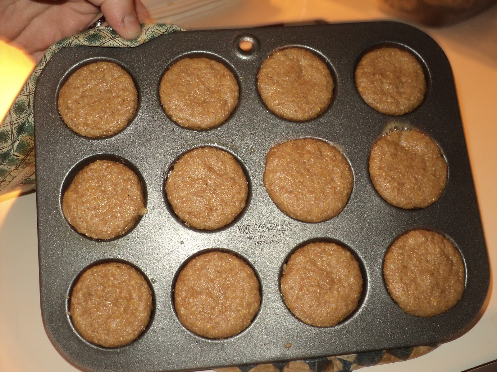 - Pour mixture into muffin tins until they are about 3/4 full