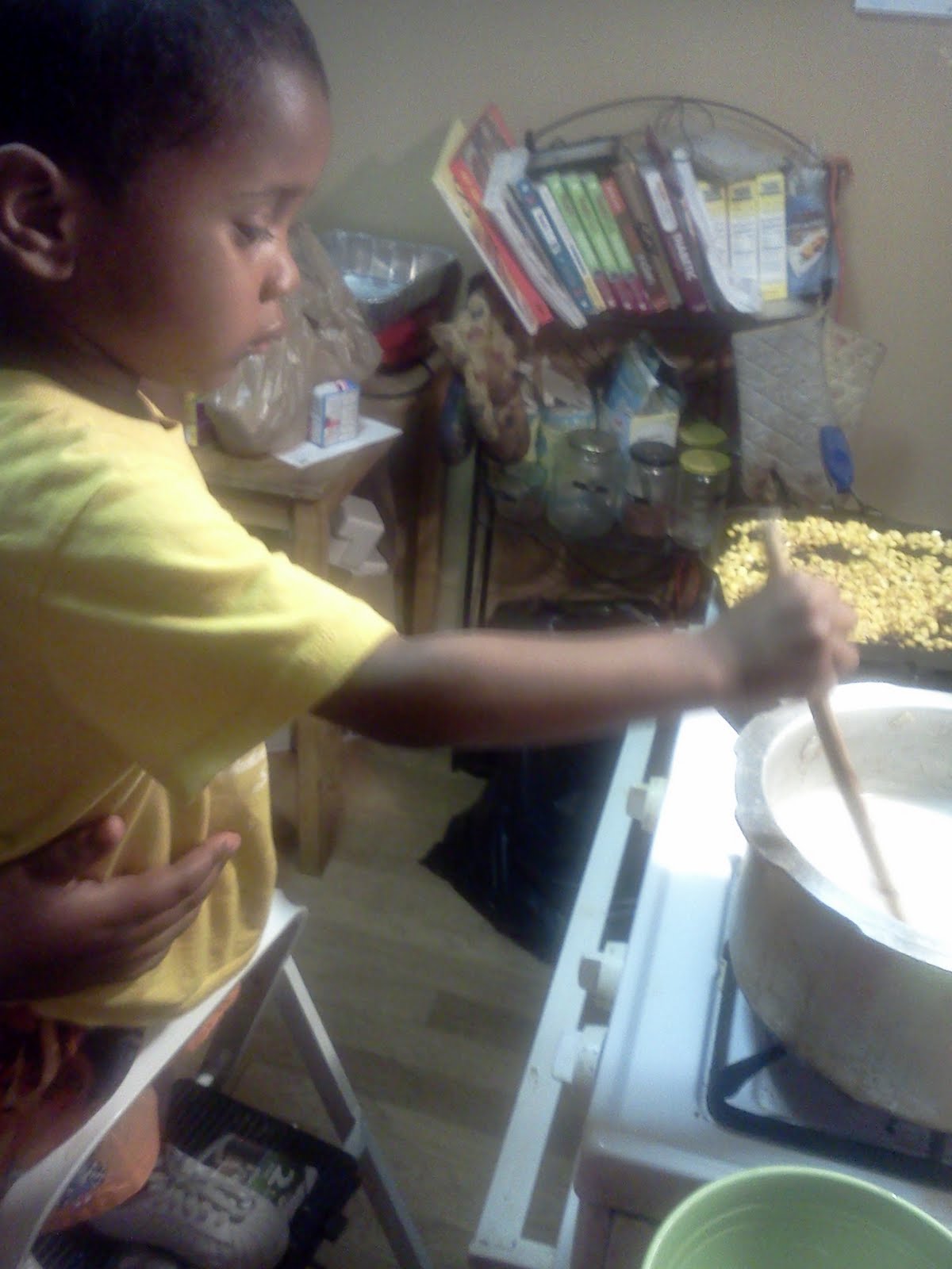 This day I had to scrub down my whole kitchen before cooking (because it was driving me nuts) and did all the stray dishes in the house. My three year-old nephew Isaiah was visiting and, come to find out, he LOVES to cook. So after all that cleaning and managing a pint sized sous chef (and documenting THAT for the future blog post), I was just too darn tired to snap a pic of the chowder when we finally ate. And the little suckers inhaled it.