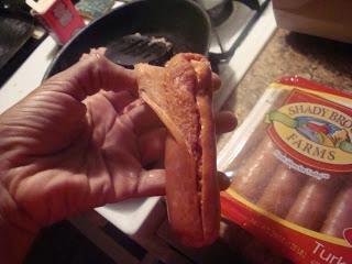 Brown up your turkey and sausage in a pan, breaking it into very fine bits (no big chunks).