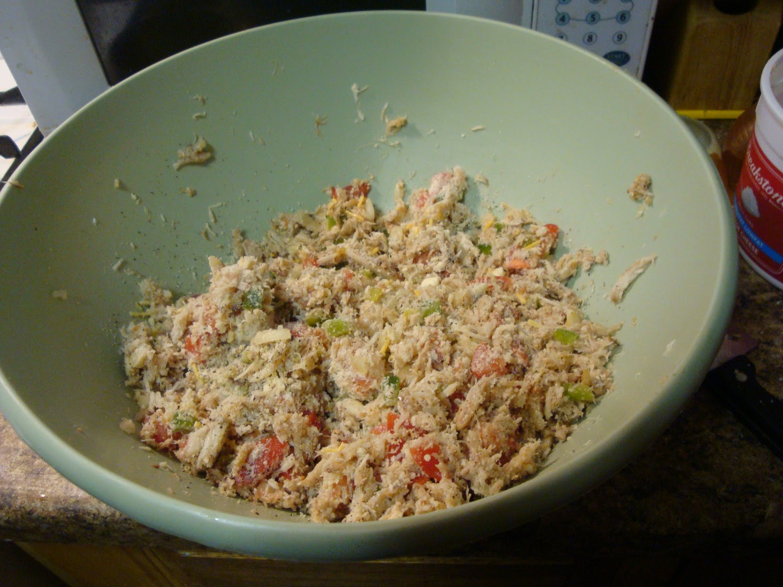 1 large can of crabmeat (I forgot to look how many ounces the one I used was, but it was roughly three times the size of a can of tuna)