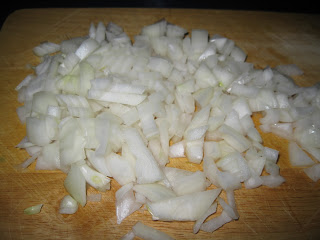 | Chop the onions in a rough dice, doesn’t have to be perfect |