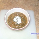 Place the lentils, veggie stock, garlic, onions, curry powder and water in a crock pot. Set it on low. Go to work and have a good day!