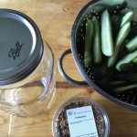 Firstly, I decided to make pickled cucumbers. I love all types of pickled veggies but I decided to start with cucumbers because that’s the path of least resistance in my family. They will eat pickled cucumbers. When I start fooling with cauliflower and other types of veggies things get dicey and I end up with a crapload of veggies I have to eat by myself (which theoretically isn’t such a big problem since they are pickled but…yeah.)