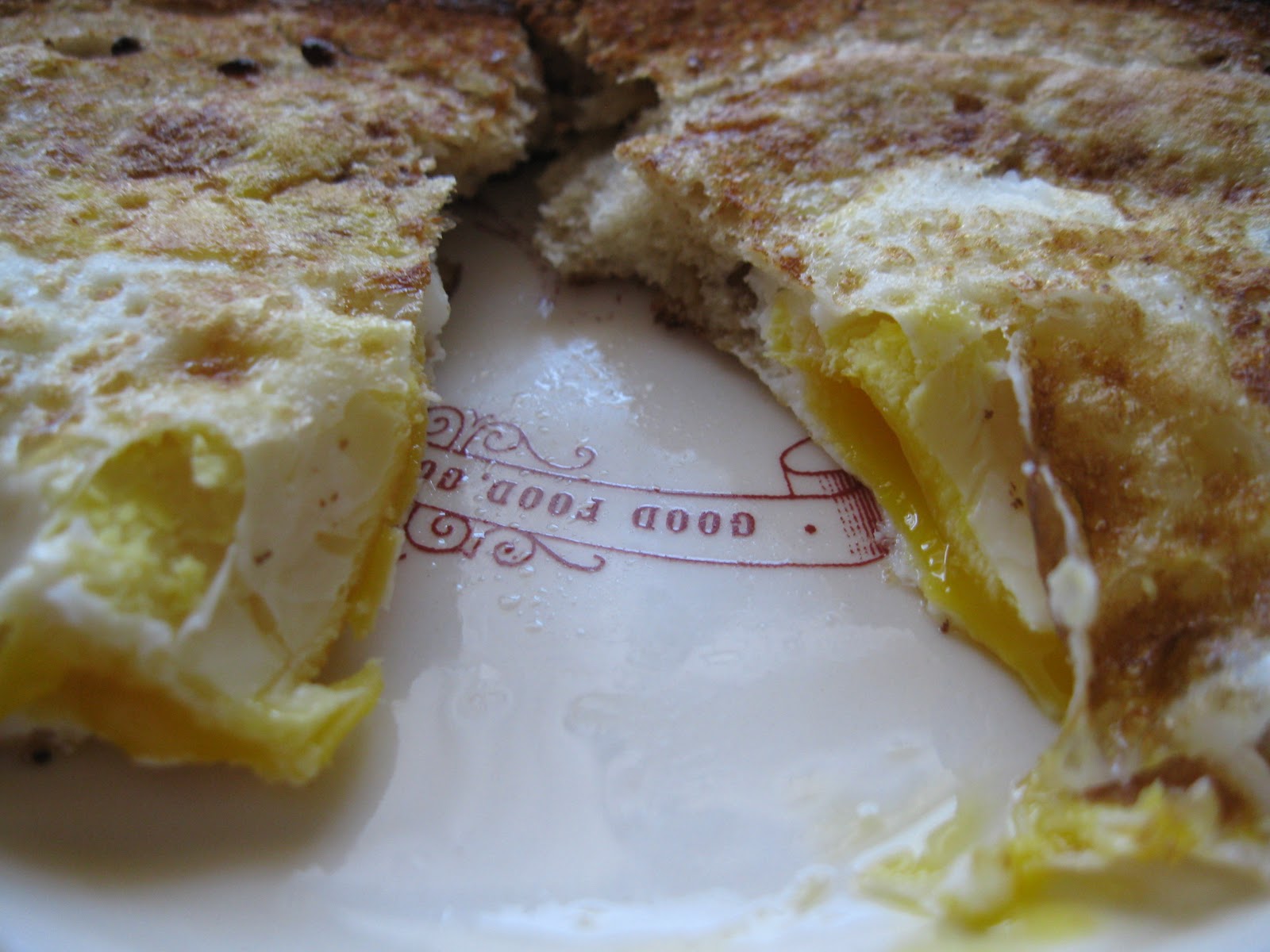Cook on medium high heat for about 2 minutes, then gently flip the bread over. Continue cooking until the egg has reached your desired level of done-ness. I like mine over medium, so I cook it about 2 minutes on each side.