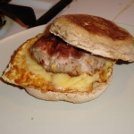Once the egg and sausage are done, layer the egg on the muffin, then the sausage, then the cheese and let it sit for a few seconds. The cheese will melt. Top with other half of muffin and you’re good to go!