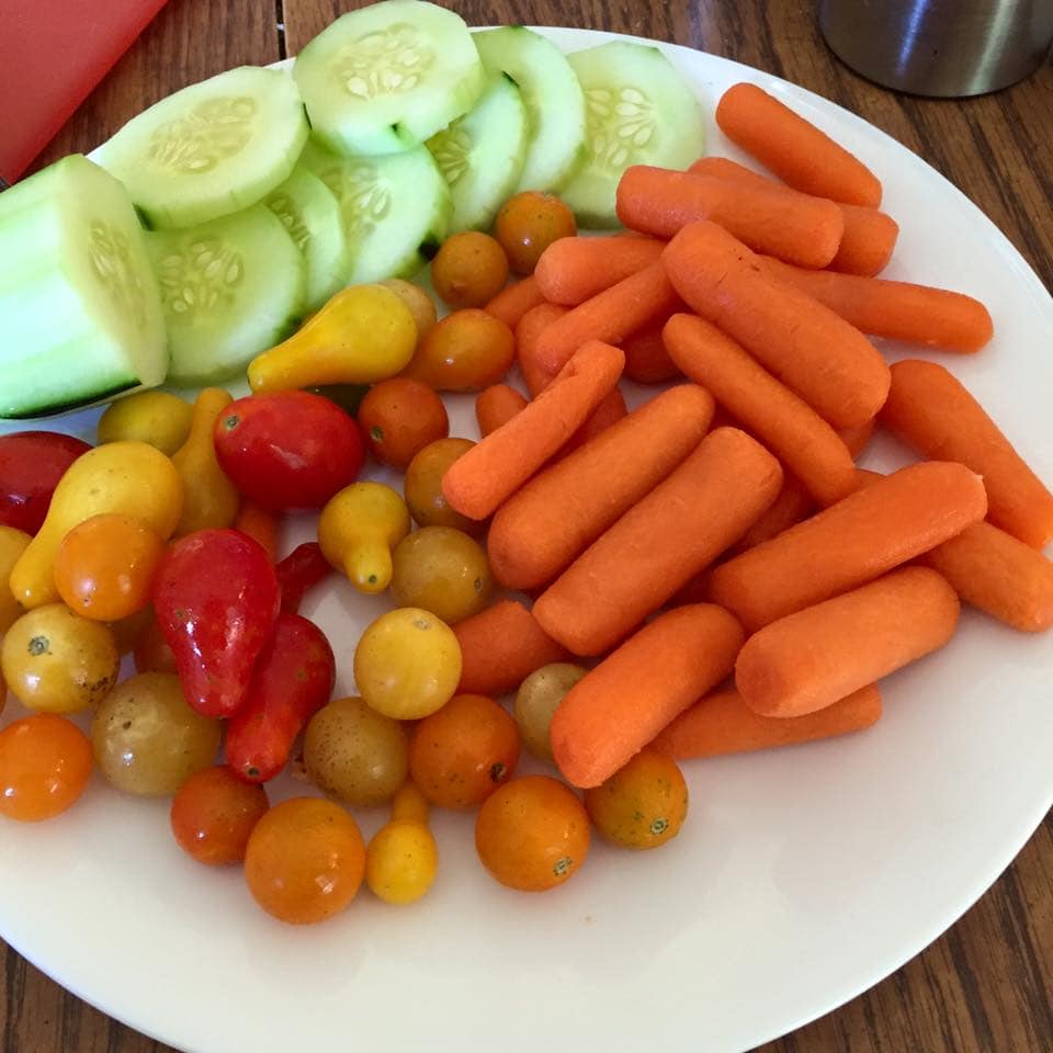 At the top of the post is my contribution: Sriracha hummus. As you can probably guess it’s store bought (hey…the struggle was real that day!). It’s made by Tribe. We served it with fresh veggies. Yummy!