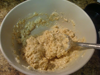 Just like with hot protein drinks, you have to “temper” the protein before adding boiling liquid. This can be achieved by simply adding enough room temperature water to coat all the oats and protein until it becomes a very thick paste, like so.
