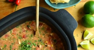 So…I had a problem when I was photographing this Chicken Tortilla Soup. No it was not the tortilla chips (although thanks for the vote of confidence). This. Soup. Is. So. Good. It’s like…”put-it-in-the-crockpot-and-go-back-every-five-minutes-to-test-and-see-if-it’s-still-good” good. It’s…”take a small slurp between every shot you take of the recipe” good. It’s “this-soup-may-never-make-it-to-the-dinner-table” good! Thankfully, this is a big batch recipe, so that didn’t happen. …