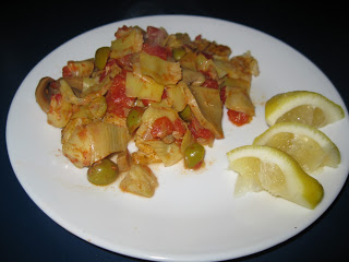 I made this tonight. It was quite delish, and even the little girl enjoyed it (at least the fish and artichokes! :D). I have lots of veggies left over; I may use it as dip or something.