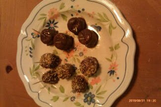 Here is my submission for the chocolate banana bonbons, I tweaked the recipie a little cuz i didnt have any greek yogart. I substituted activia light vanilla, and as you can see in the pic I sprinkled half of them with toasted coconut–YUUUUUMMMM they turned out awesome! even my hubby agreed! Thanx for this recipie, i will be making these often!