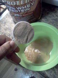 I did peanut butter with vanilla protein powder and a little milk – tastes like soft peanut butter fudge – yummy!