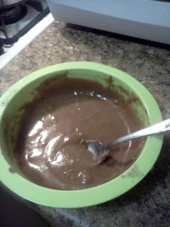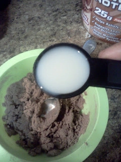 3 tablespoons milk (For the batch shown I used skim milk. The batch before that I used Hood Calorie Countdown Chocolate milk. Both turned out divine but the version with the chocolate milk was a bit rich.)