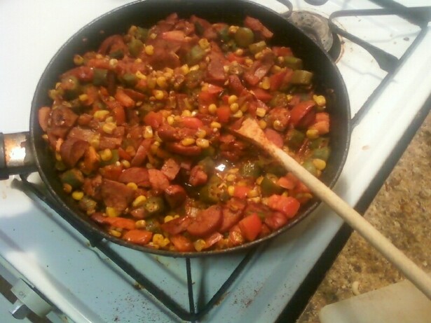 8 oz. (1/2 pkg) frozen cut okra (if you absolutely hate okra, you can use chopped zucchini in its place…and no it doesn’t have to be frozen)