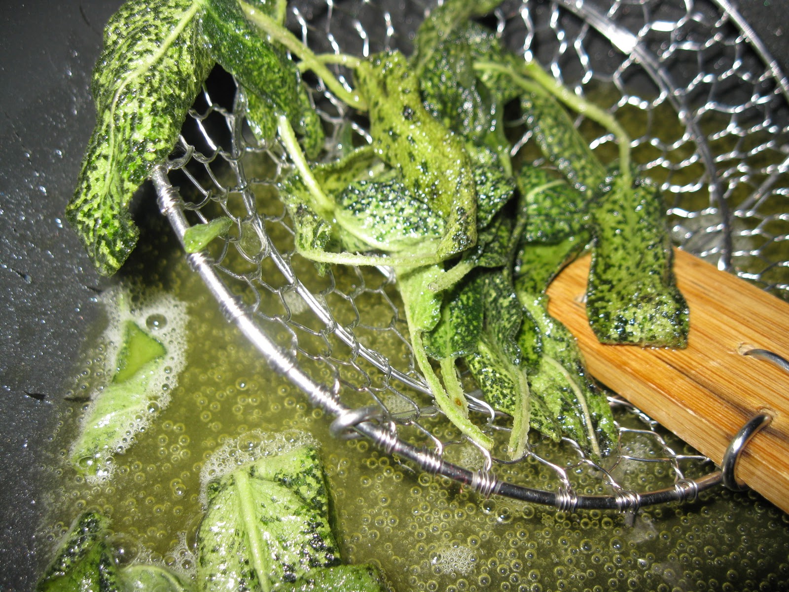 | Removing the fried sage leaves |