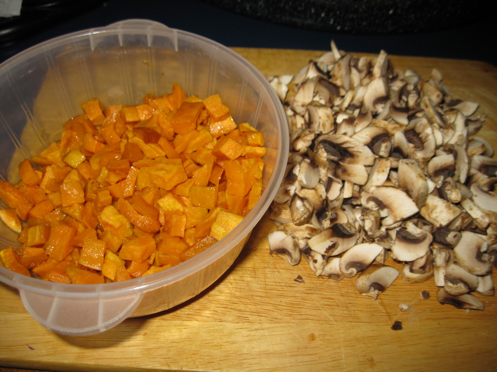 | Leftover Sweet Potatoes with the fresh chopped ‘shrooms |