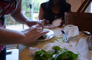 Margaret rolling up the roulades after stuffing them with asparagus and other yummy veggies! (You can use whatever you like.)