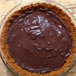 - Once the pie crust is out of the oven and cooled and the filling is chilled, pour the filling into the crust and smooth it all. Now it's time for the fun part: toppings! I usually use either sugar or fat-free whipped cream and some other type of garnish (cocoa powder, chocolate shavings, etc.). I like pretty food. Once you've got it the way you want it, refrigerate until you're ready to serve!