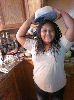 Here is La Petite Diva (with new hairdo) shaking our salad: