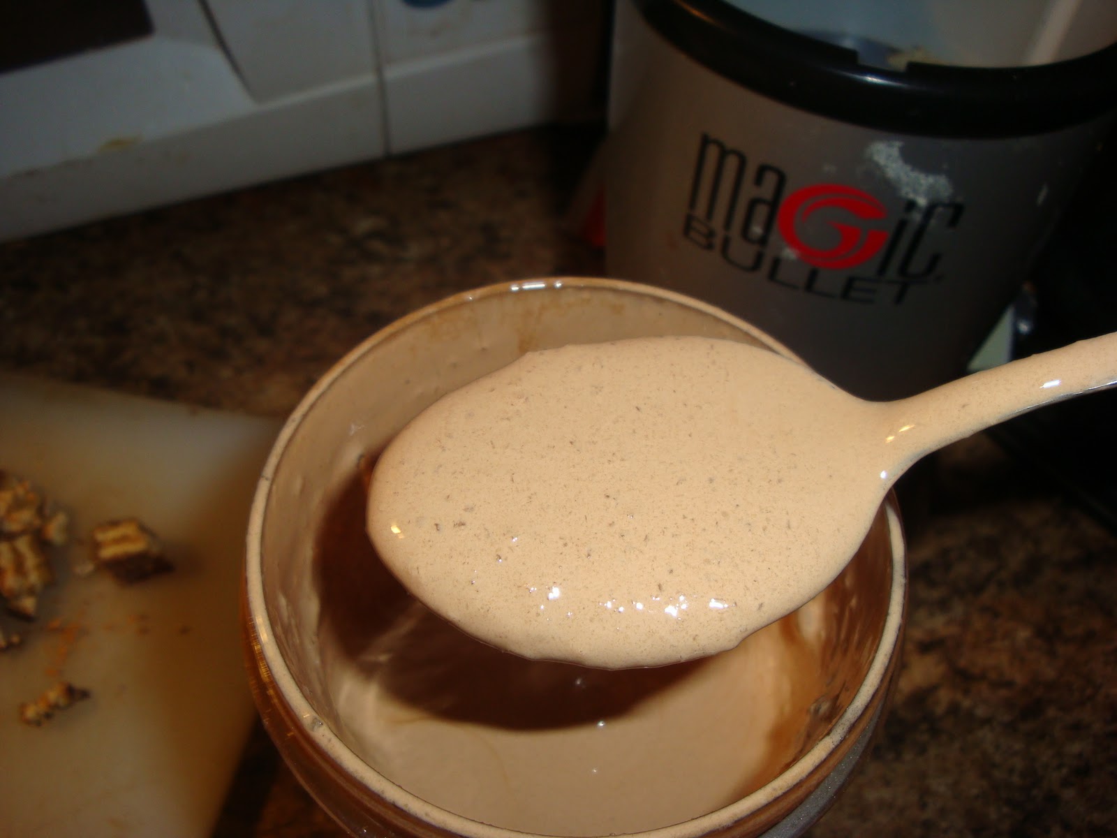 You put your milk, protein powders and Splenda in your blender cup and blend for two minutes (yes, two whole minutes!). Then you add the ice and blend again. I will tell you this is not an easy feat. You are not giving your blender much liquid to work with.