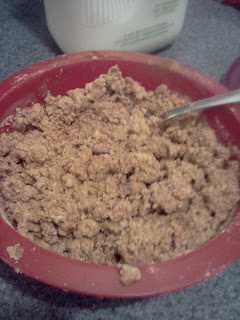 Next you want to add your milk, one tablespoon at a time until your mixture looks something like this: