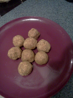 got "the balls" chillin in the fridge now 🙂 i used chocolate protein powder and they sure do smell yummy!!!! can't wait to try them. i'm thinking some salted caramel davinci syrup as flavoring next time!!