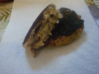 Form patties of desired size in your hand (I did sandwich sized ones because, as we all know, I have the Wonder Pouch), then place the patties onto the hot pan. Cook about 4-5 minutes each side.