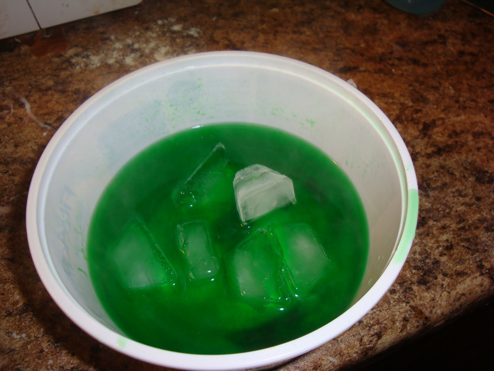Prepare Jell-O according to package directions in another bowl. TIP: If you ever misplace your half cup measure (as I often do even though I own several of them), you can also use 4 ice cubes. 1 ice cube = 1 oz. water.