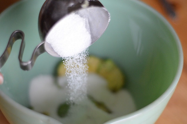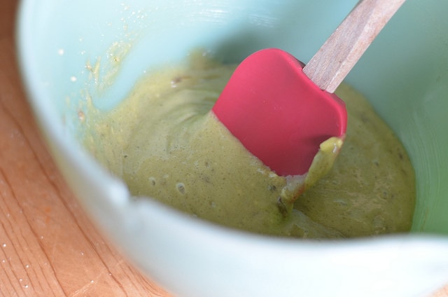 - In another bowl, mix avocado and sweetener, preferably with a hand mixer to work out the lumps in the avocado. After fully combined, add egg and vanilla.