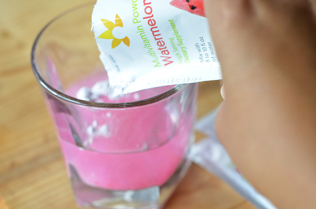 After I tried it alone, I tried it with a drink stick. A sugar-free Hawaiian Punch drink stick to be exact. That’s my absolute favorite kind! (I loved the full sugar kind as a kid.) I will say that while adding the powder to a 16.9 oz bottle of water made it easier to drink (because I have to finish the whole bottle anyway), the addition of the multivitamin powder dulled the flavor of the Hawaiian Punch a little (which probably could have been remedied with True Lemon but I was on the go).