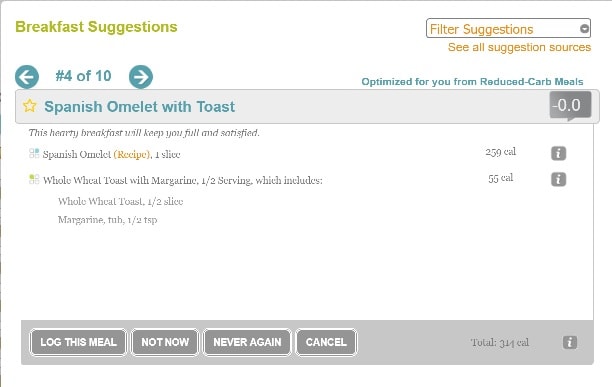 - Also, once you have the app, it will start sending you meal suggestions when it thinks it’s your mealtime. If you put in the times when you eat a meal, it will begin to learn when breakfast, lunch, dinner, and snack times are and will send you a notification at the appropriate time. For those of us who suffer from food amnesia (aka “I forgot to eat!”) this can be very beneficial!