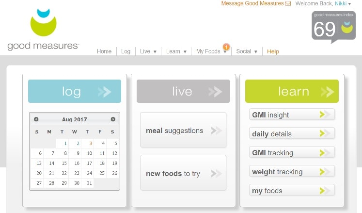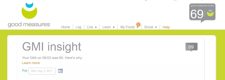 So once Alice and I met and set up my goals, she put them onto the back-end of the food tracker…however she does that. (I’ve never really asked!) From there, the site has one main way it determines if you are making the necessary eating choices to get to your goals. It’s called the Good Measures Index, or GMI for short.