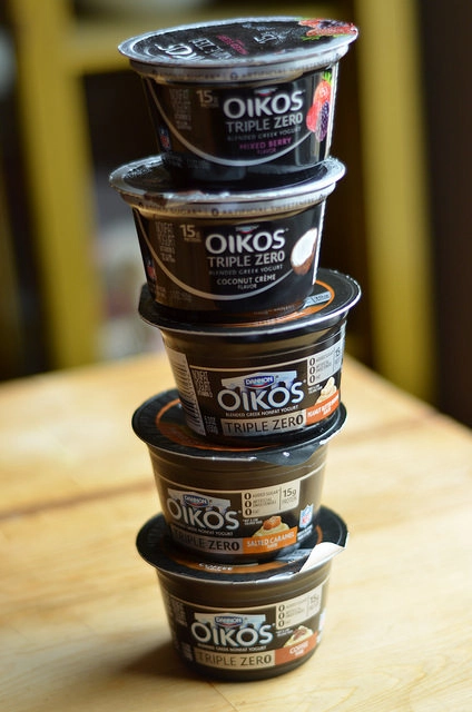 Did you guys know the Oikos Triple Zero (0 fat/0 added sugar/0 artificial sweeteners) came in so many flavors now? And if you did…why didn’t you tell me??? Anyway, I was in the grocery store and there was like a whole section in the dairy aisle of these things hanging out like they were too cool to associate with the other yogurts. What you see here represents about half of all the flavors I saw. It really was a wonder.