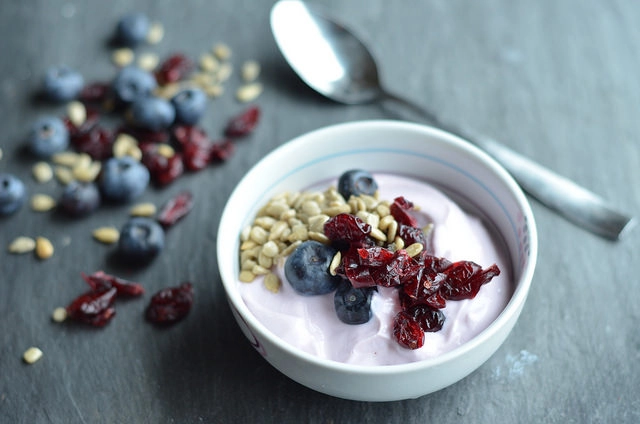 And, finally, the piece de resistance (did I spell that right?). This one was by far my favorite! Ok so it’s 6 oz. of mixed berry yogurt, some blueberries, some craisins and probably about 2 teaspoons of salted sunflower seeds. Oh. My. GARSH! Guys this was so good. No seriously…this was so. GOOD! I’m really into the sweet/salty combo so this was right up my alley, but here was the best part. Ok so by the time I shot this one I had sampled so much yogurt and stuff, I was full. So I stuck this in the fridge. Came back to it the next day and something magical had happened. The craisins absorbed the extra liquid from the yogurt and plumped up and were like these juicy tart/sweet flavor-bombs, which, when paired with the sunflower seeds, were just…ugh. I can’t even describe it.