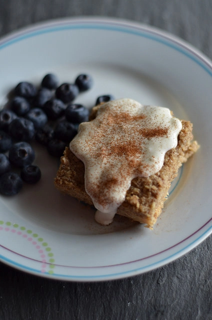 So here we have a slice of my cinnamon raisin protein baked oatmeal with a side of berries. Now I know what you’re going to say. “But the carbs, Nikki???” Well you guys know where I stand on giving stats, but I will say that my baked protein oatmeal comes out to a good amount of protein, so I’m comfy with it. Berries don’t contribute much. Your mileage may vary. We could just as easily put a nice lil’ breakfast sausage in that slot if you are worried about that, mkay? Cool!