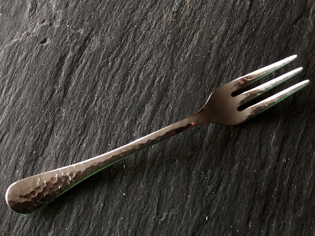 The handles of all three pieces were textured, which I thought was pretty, and they looked like they had a decent grip, although I was a bit concerned about how short the pieces seemed to me. I’ll get to that in a second. The only other comment I have about the look and size of the set is that the fork has three tines, whereas traditional dinner forks have four. It was something I noticed but I wasn’t put off by it.
