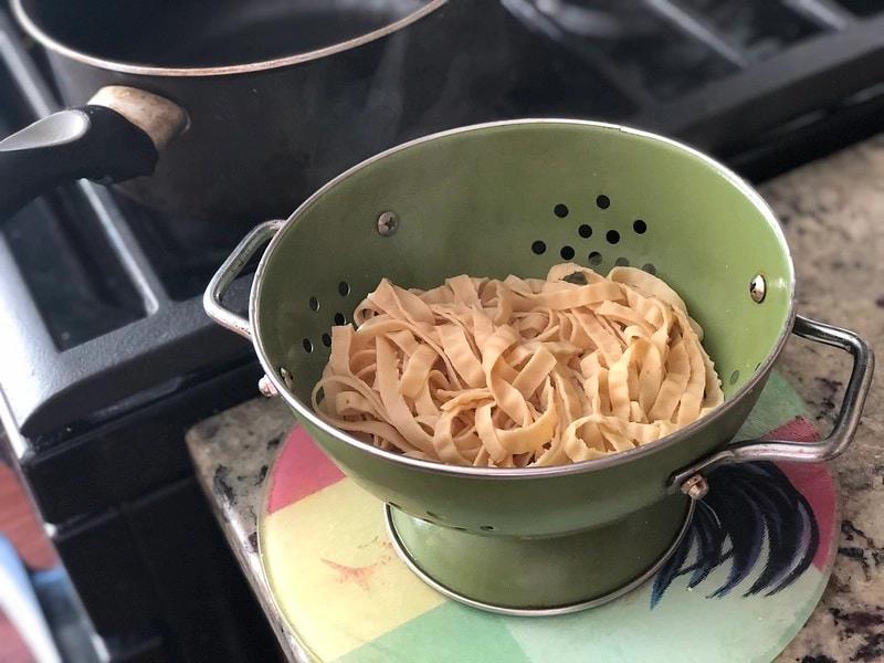 Because that’s not all I would do to regular pasta. For regular pasta I would bring a pot of salted water to a boil with some oil in it so the pasta doesn’t stick. Should I do that here? I had no idea. But I thought it best to go with what I knew. Especially since I eventually would have to ingest this pasta!