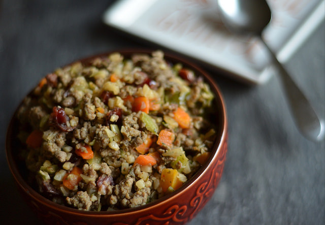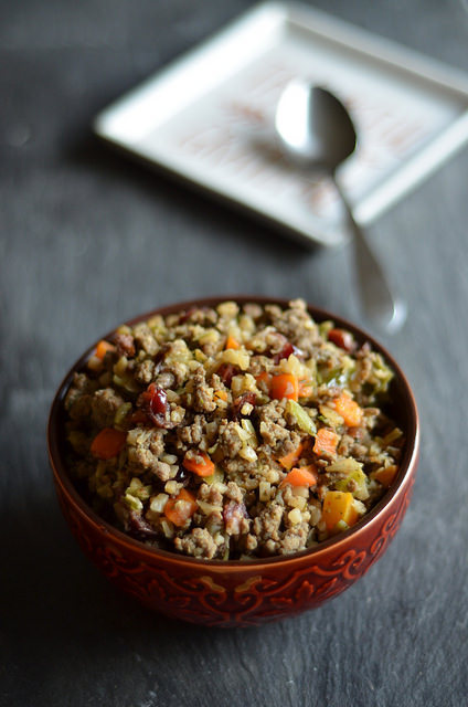 The other thing that was missing for me was crunch! In a traditional bread dressing, it’s been baked and has crunchy bits at the top. I. Lived. For. Those. They were noticeably absent here. But that’s easily remedied. Just take a dry pan and get it hot on the stove. Dump in about 1/2 c. chopped walnuts and dry-toast them just until you can smell then, then throw that in there. Also if you add just enough salt, I think you could also get away with a diced granny smith apple in there and that would be a flavor texture home RUN.
