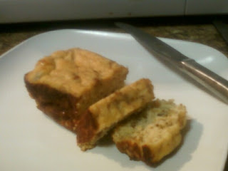 Well Saturday morning I was cleaning the kitchen and discovered three ripe, but still usable, bananas. For me that can only mean one thing: PROTEIN BANANA LOAVES!!! Shouts to Michelle over at “The World According to Eggface” for introducing me to the methodology of baking with protein powder. I whipped up a batch of loaves Saturday morning and guess what? By this morning when I went to snap a pic (on my camera phone unfortunately…long story…) there was only one left!