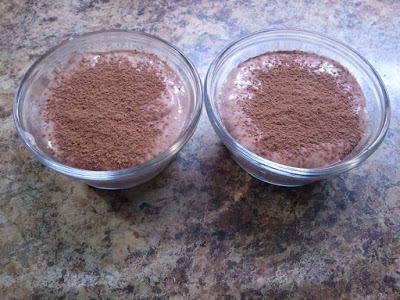 - Pour the mixture into 2 dessert dishes. Sprinkle the top with cocoa powder.